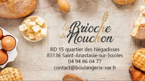 La Brioche de Nouchon est une boulangerie située à Sainte-Anastasie-sur-Issole, en France, connue pour ses délicieuses brioches et autres pâtisseries. Fondée par Nouchon, une boulangerie passionnée, elle propose une large gamme de produits de qualité.