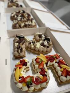 - Des gâteaux sur mesure pour les célébrations spéciales, comme un magnifique number cake pour une fête d'anniversaire.